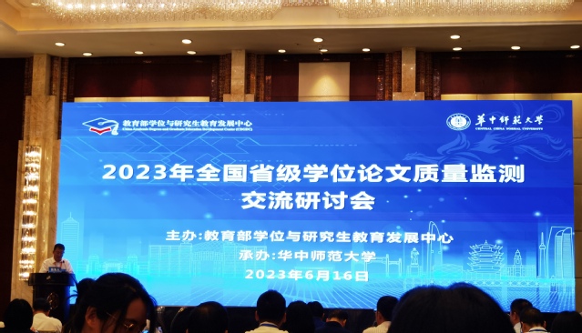 2023年6月16日在湖北武汉市召开了全国省级学位论文质量监测交流研讨会,参会人员有教育部学位中心分管领导、各省(市、自治区)教育厅(教委)及新疆建设兵团教育局相关人员、有关高校工作人员。我校作为四川省高校代表参加了本次会议并在大会上进行交流发言,分享了我校硕士学位论文质量监测的做法和经验,同时对学位论文抽检工作提出了建议和意见,由于我校在硕士学位论文质量检测工作中取得优异成绩受到了大会的表扬。