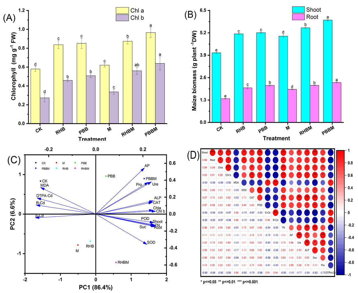 为了提高农作物产量,农药化肥被大量施用,从而导致土壤板结、重金属污染等一系列生态环境问题。其中,镉污染严重影响农作物的生长发育和农产品的品质安全,从而威胁到人体健康。玉米是我国三大粮食作物之一,也是重金属镉的富集作物。因此,探究镉污染土壤玉米种植过程中,减少农药化肥的施用,降低镉的生物利用度,促进玉米的生长发育成了亟待解决的问题。
