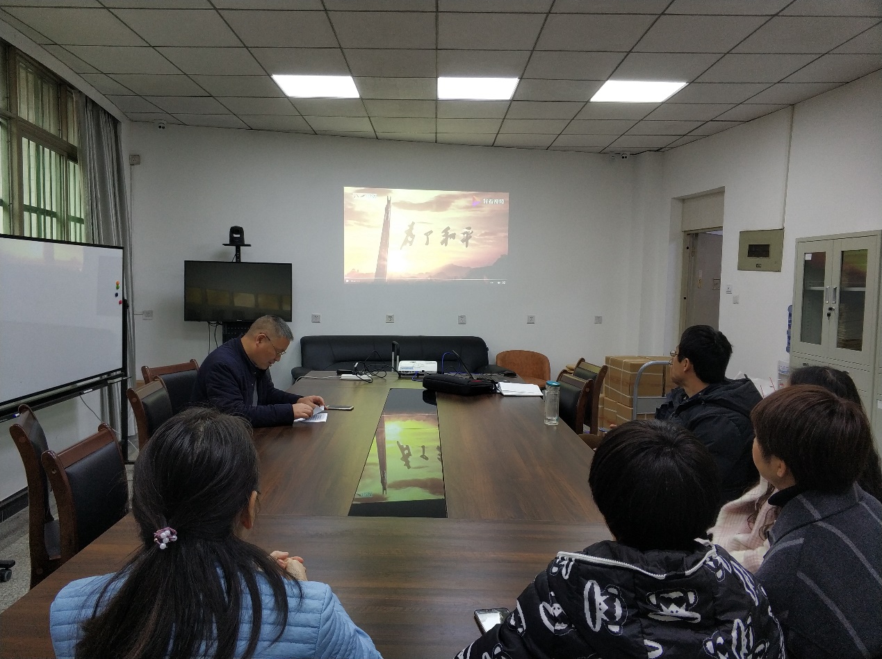12月2日上午,研究生部党支部在4C310组织开展“铭记历史不忘初心”主题党日活动,支部党员及全体教职工集中观看大型电视纪录片《为了和平》。学习会由支部书记陈广贵主持。