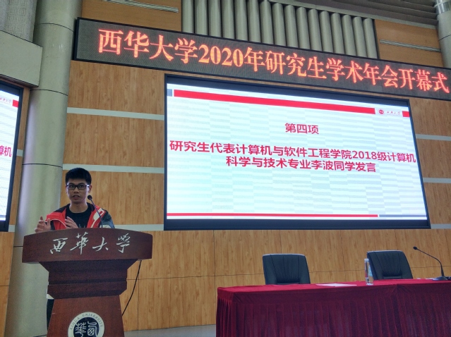 计算机与软件工程学院2018级计算机科学与技术专业的李波同学作为学生代表发言,他认为,做科研,切忌浮躁、眼高手低。他同时对如何做好科研分享了自己的看法和建议。