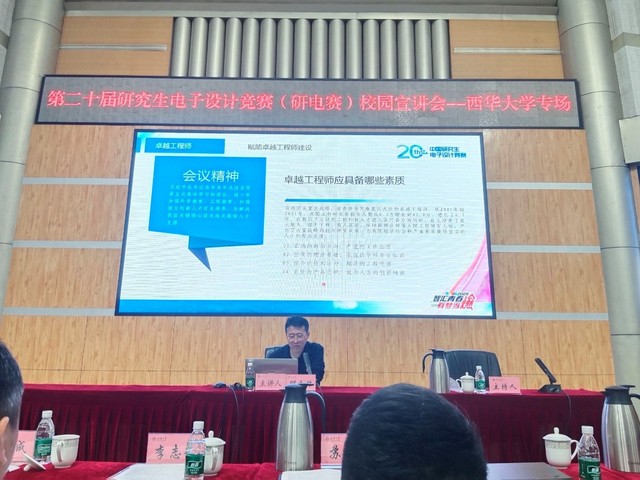 4月28日上午,第二十届中国研究生电子设计竞赛betway必威西汉姆联专场校园宣讲会在四教报告厅举行。西南交通大学集成电路学院副院长邸志雄、清华大学深圳国际研究生院高级工程师李志德、命题企业代表来校宣讲,研究生院副院长苏文明,电气与电子信息学院副院长阎铁生及师生代表参加会议。